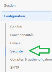 Rendez-vous sur l’administration de votre plateforme, onglet Sécurité