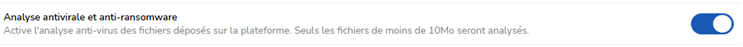 Afin de protéger vos données, une analyse anti-virus est activée par défaut sur votre plateforme.