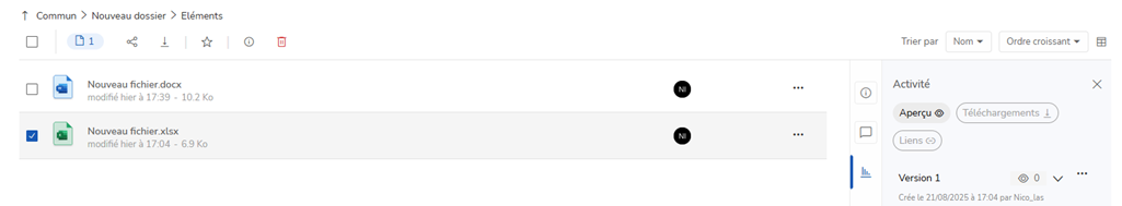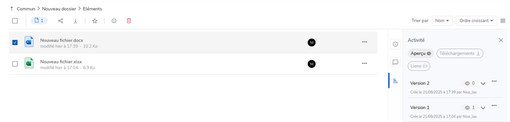 On peut vérifier, ici que mon 1er fichier, contient 2 versions, contrairement au second fichier, qui lui ne contient qu'une seule version.