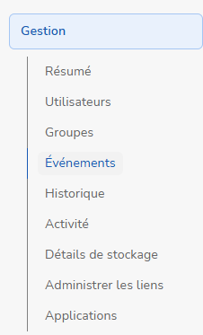 - Toutes les notifications envoyées à vos utilisateurs sont indexées dans les Evènements. Cependant seules les notifications d'ajouts de fichiers ne comportent pas de détail consultable.