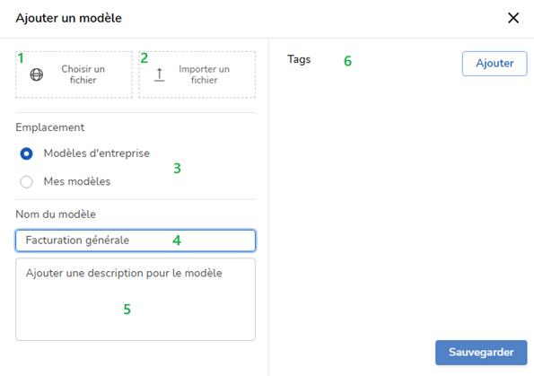- Vous donnez un nom à ce modèle (si non remplis, le nom donné sera celui du fichier sélectionné).