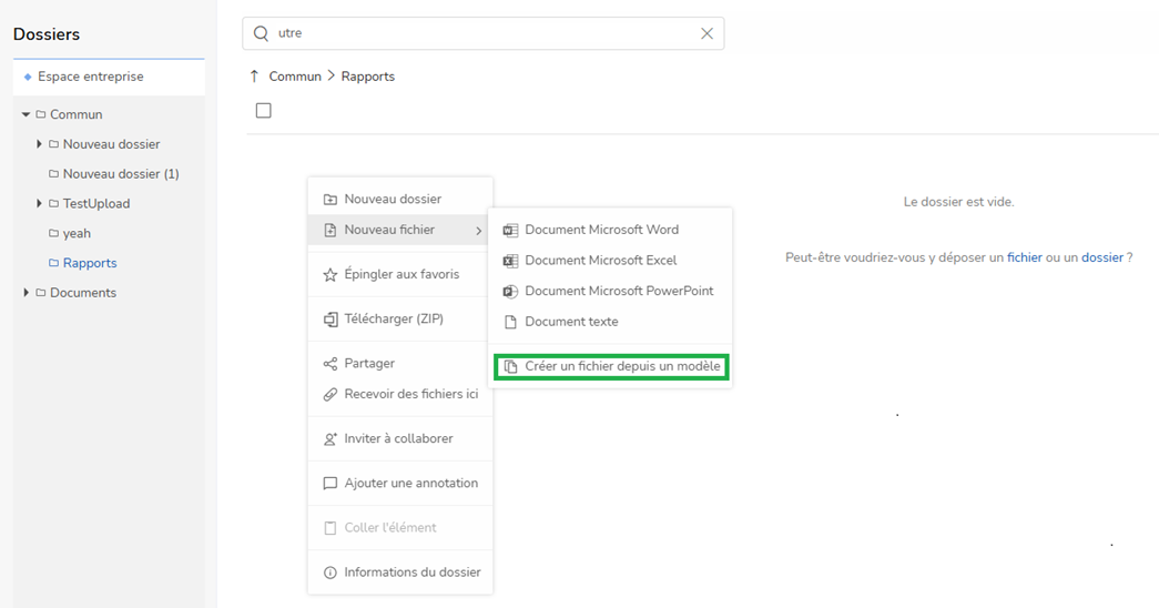 Utilisez le modèle ciblé au sein d'un dossier de votre plateforme
