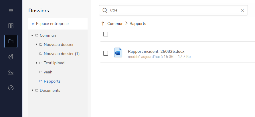 Exemple : ci-dessous, mon utilisateur souhaite créer rapport, au sein de son dossier Rapport incidents. Son administrateur a déjà créé les éléments nécessaires à l’entreprise.