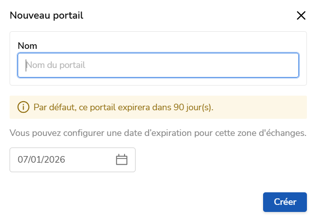 Il faudra ensuite ajouter le nom du portail ainsi que la date d’expiration avant de valider la création.