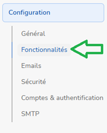 Dans l’administration, placez-vous sur l’onglet Configuration, puis sur le menu Fonctionnalités