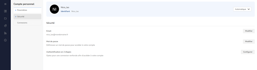 Sous le menu Connexion, vous trouverez donc la possibilité de :