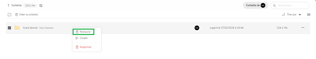 Concernant la restauration de dossiers, ayant été supprimés et se trouvant dans la corbeille utilisateur