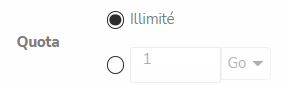 Il est possible d'ajouter un quota pour limiter l'utilisateur dans sa capacité de stockage (en Go, Mo, Ko, o). Pour cela Accédez aux Options avancées et dans la rubrique Quota sélectionnez la deuxième ligne pour définir le quota.