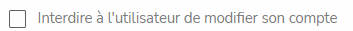 Vous pouvez interdire à votre utilisateur de modifier ses informations de connexion en cochant la case qui se trouve dans les options avancées de la fenêtre de modification