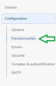 Il suffit d’aller dans l’administration de votre plateforme, menu Configuration, puis onglet Fonctionnalités.