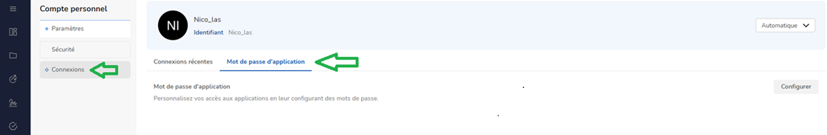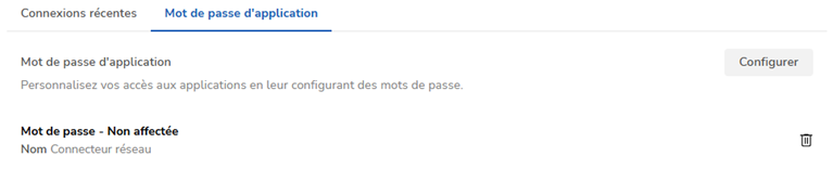 Dans la fenêtre ouvrante, placez-vous sur le menu Connexions puis sur l’onglet Mot de passe d’application