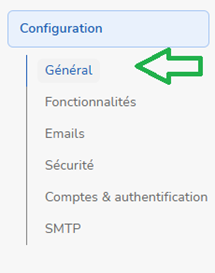 Dans l’administration de votre plateforme, placez-vous sur l’onglet Configuration, menu Général