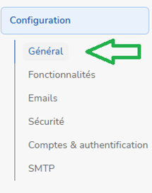Dans l’administration de votre plateforme, placez-vous sur l’onglet Configuration, menu Général