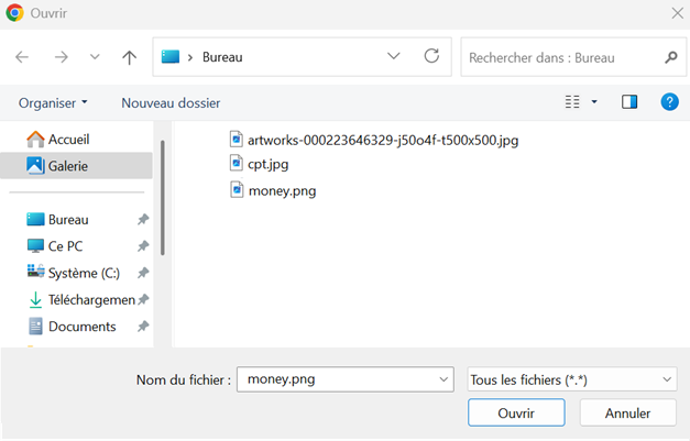 Puis, sélectionner les éléments à déposer et cliquer sur ouvrir