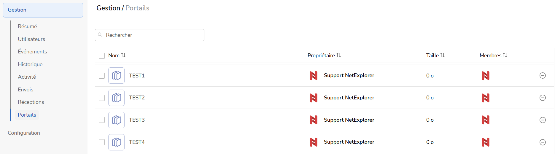 Dans la gestion, vous allez vous rendre sur l’onglet Portails qui va permettre d’avoir le suivi détaillé des portails créés par la totalité des comptes de la plateforme ainsi qu’un certain nombre d’informations dont :